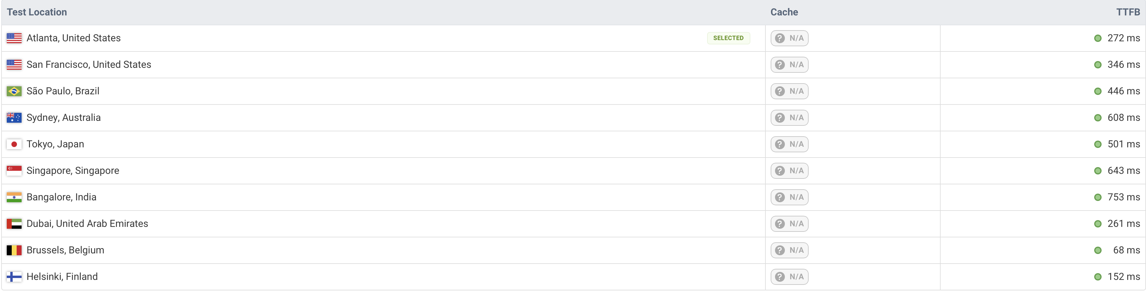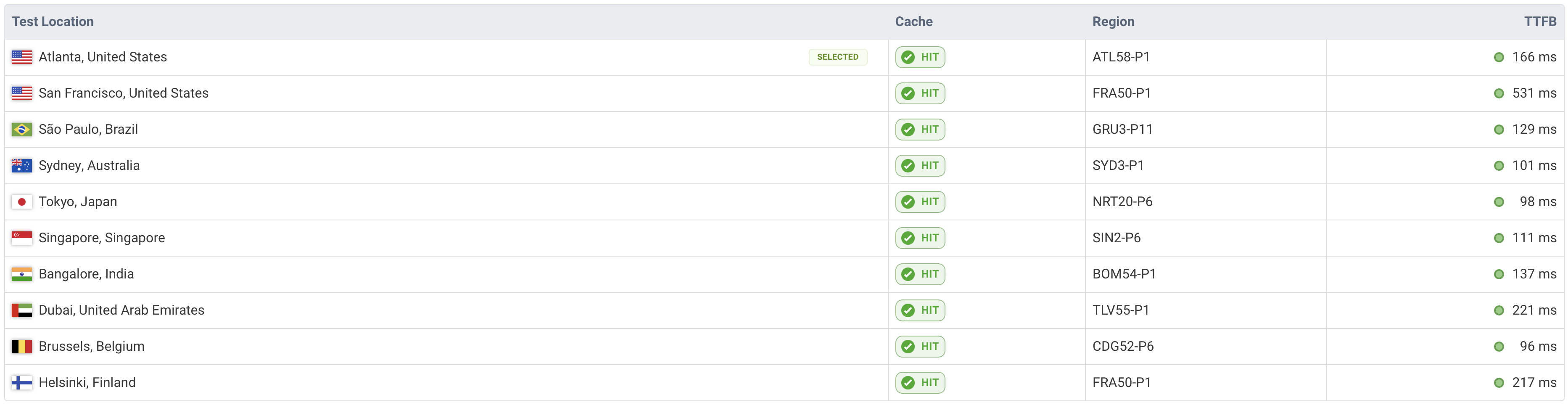 As we can see, the TTFB (Time to First Byte) has significantly decreased for most locations, which is exactly what we wanted to achieve.